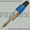 1-119G BL Разъем аудио 6.35мм "шт" стерео металл цанга "позолоченный носик" на кабель, синий